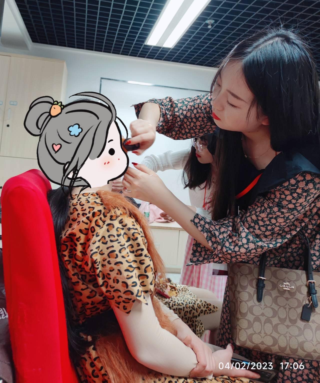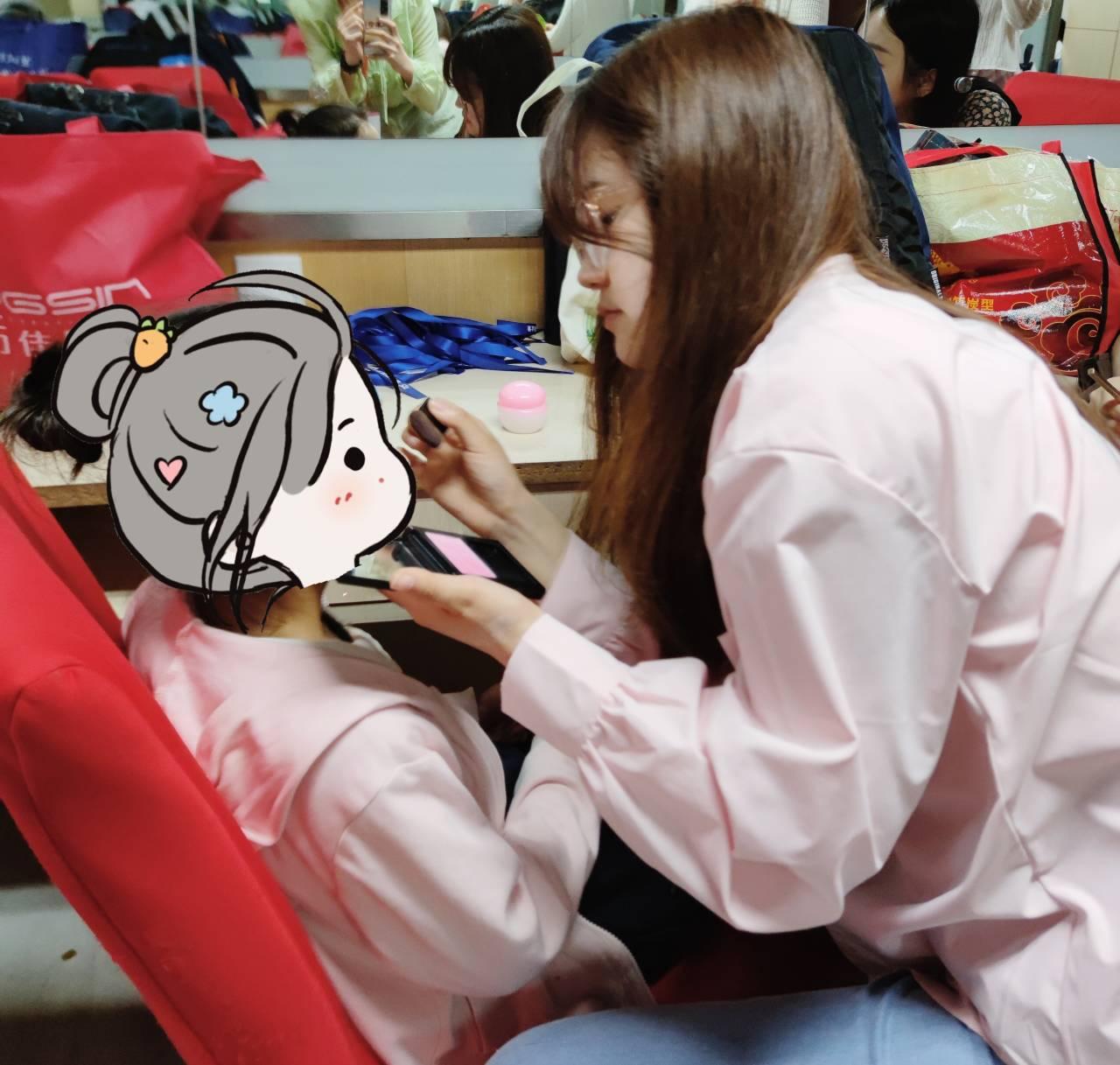 图4 苏云琦在为非洲鼓表演队的小朋友家长化妆