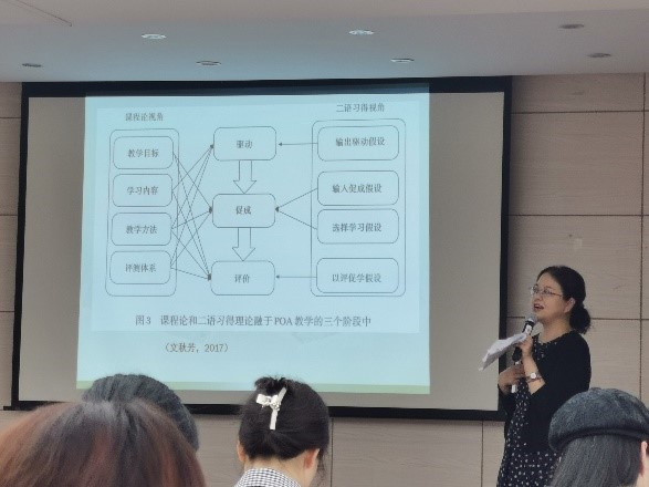 文理学科课程组周梅教授为大外中心全体教师开展了主题为 “产出导向法在英语教学中的应用研究”的讲座。本次讲座由文理学科课程组主任雷蕾主持,大外中心文理学科课程组、创新课程组、电气信息课程组、工程能源课程组和艺体课程组40余名教师聆听了讲座并展开了积极讨论。