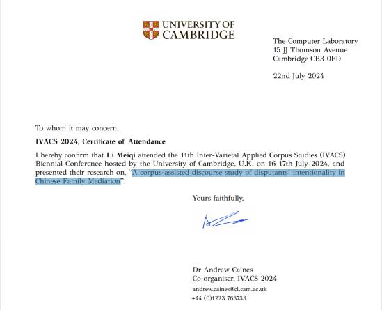 2024年7月16日至17日,第11届跨语言应用语料库研究双年会(The 11th Inter-Varietal Applied Corpus Studies Biennial Conference,简称IVACS)在英国剑桥大学成功举办。该会议是跨语言应用语料库研究协会组织的两年一度盛会,也是语料库语言学领域的重要国际会议之一,往届会议均在欧洲的世界名校举办。此次会议更是吸引了来自世界各知名大学、研究机构的百余位专家、学者参会,共同探讨语料库语言学的最新研究成果和发展趋势。百家乐在线游戏