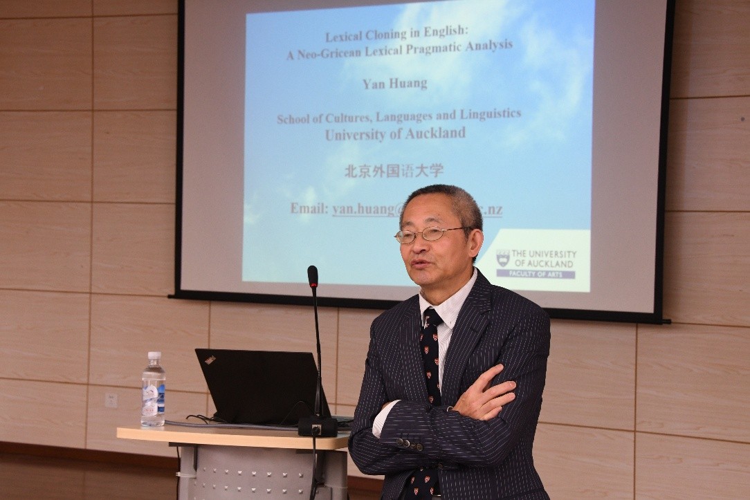 501学术报告厅举行。黄衍教授首先给出了一个英文词汇克隆的描述,然后讨论了词汇克隆的上下文依赖性,最后概述了一个新格莱斯语词汇语用学对这一语言中的新词汇现象的分析。黄衍教授向大家介绍:词汇克隆,正式称为“对比焦点重叠”,是指词条存在修饰语重叠的现象;重叠修饰语,接收对比焦点重音,用于区分某些特权意义,与其他意义相比,模糊,多义,模糊或松散的词汇表达(黄2009);词汇克隆存在于多种英语中,包括美国、澳大利亚、英国、加拿大、新西兰和南非英语,但在美国英语中使用最广泛,这也是最近出现的一种现象;此外,词汇克隆的使用在很大程度上局限于某种非正式的英语口语会话记录;甚至在书面英语中发现的词汇克隆的标志,如剧本、电影和电视节目,在很大程度上都是以书面形式(作为媒介)自发的口语(作为一种模式)的表现。黄衍教授阐释充分,事例生动,深入浅出,寓教于理,赢得了师生们的广泛认同和高度肯定。