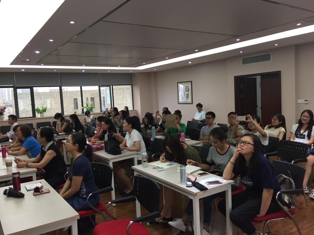 教师作两次有关数据分析和期刊论文发表的讲座。邹老师的工作态度感染了与会教师,大家积极发言,交流对科研工作的认识和体会。邹老师还对教师们在工作坊中提出的科研中遇到的具体问题进行了及时有效的指导。