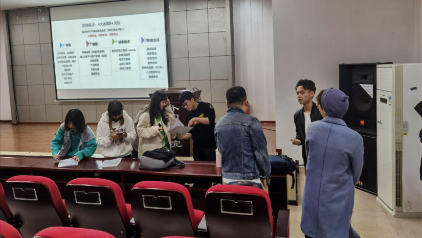宣讲会随着公司形象宣传片的播放正式开始,碧捷(广东)洁净科技有限公司宣讲团队的张先生首先介绍碧捷公司专注于创新美颜和个性护理,通过播放一条公司在职人员对公司整体看法的采访视频,进一步介绍了公司的工作环境、福利待遇及以客户为中心的企业价值观等。针对大学生毕业入职的适应性问题,张先生表示,公司设有一系列完整且专业的培养体系和培训计划,通过“点线面”的发展模式以实现“校园人”向“职场人”的转化。