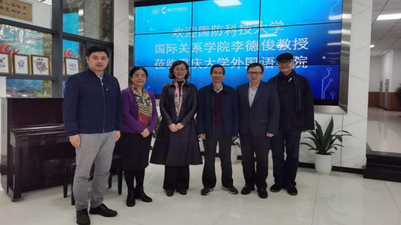 的热情接待表示感谢。他说,外语的研究和应用不应局限于民间和社会发展的其他方面,在军事领域也应发挥它的作用,特别是近年来,国际形势发生大变化的格局下,加强地方院校和军事院校在语言方面的合作尤为重要,外语的研究成果在国防领域应体现更多的应用价值。李教授还就外语人才培养、语料库的建设等方面和大家进行了交流,并邀请院领导在合适的时候访问国防科大,院领导愉快地接受了邀请。