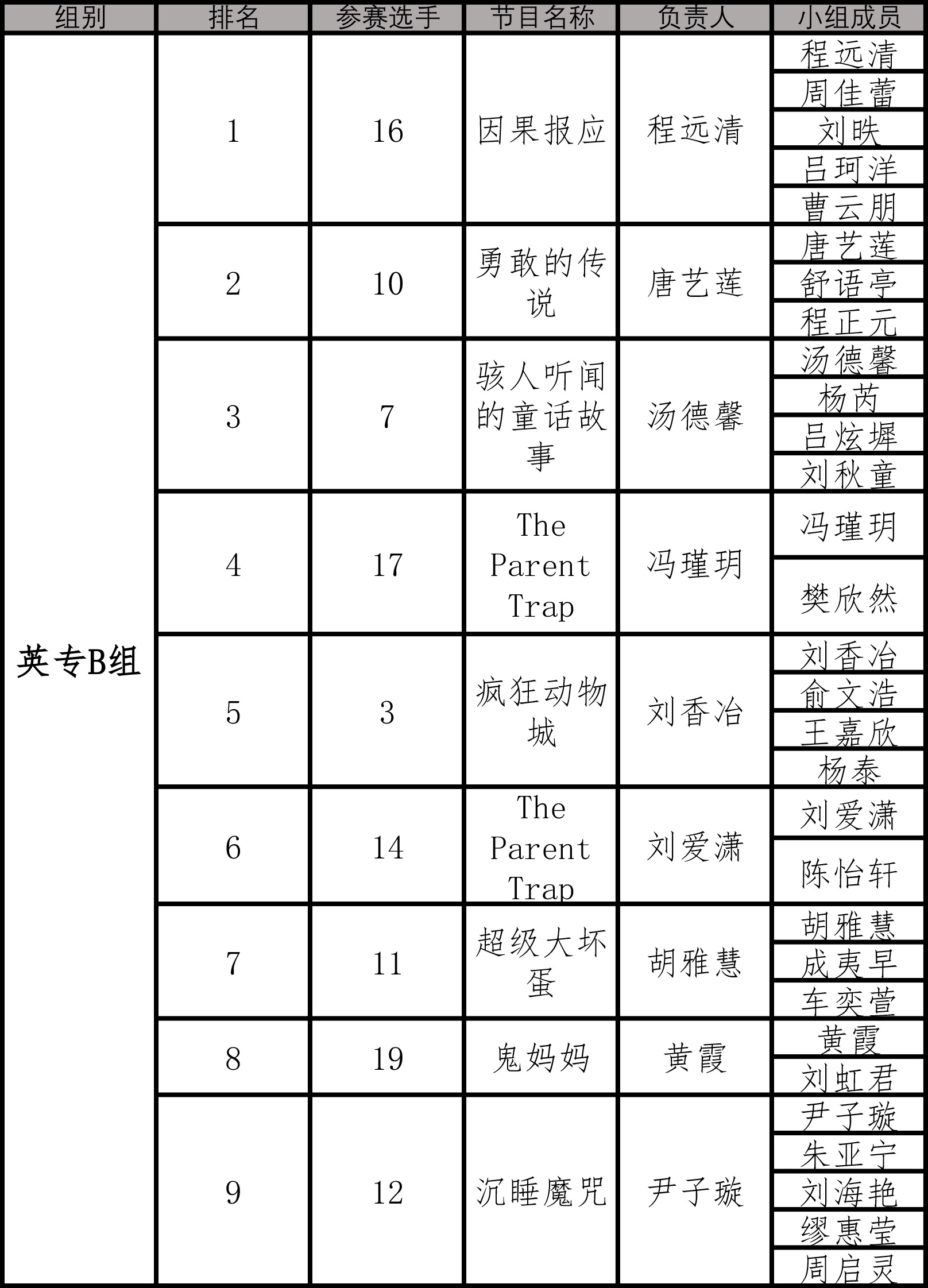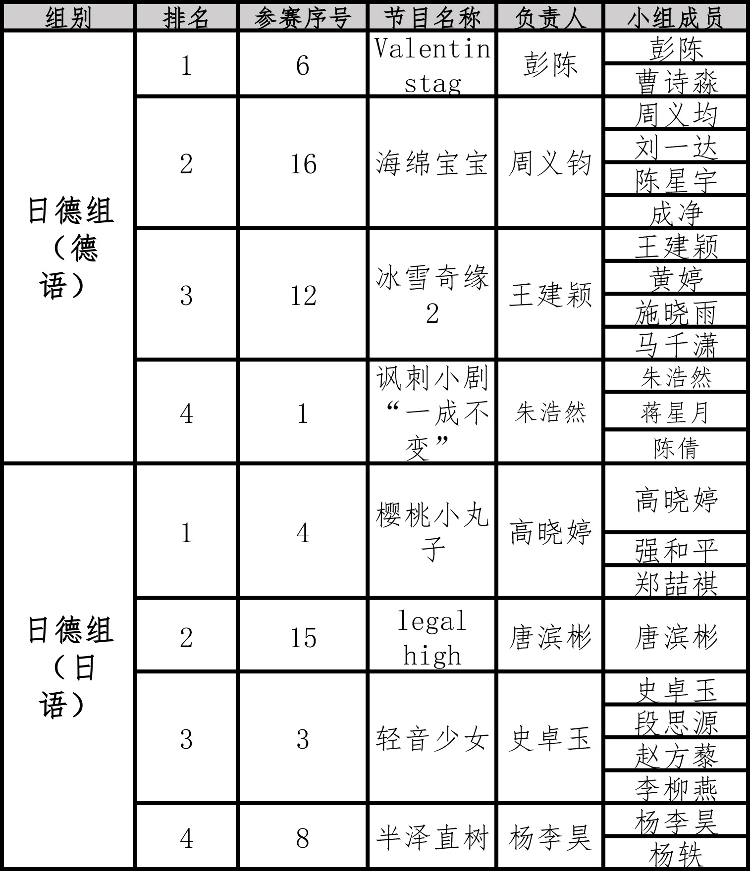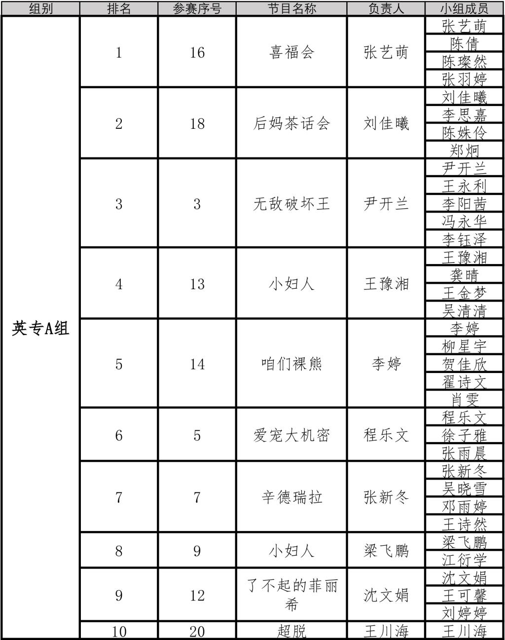 经过紧张激烈的比赛,各个组别晋级决赛的小组也相继决出。具体情况如下图: