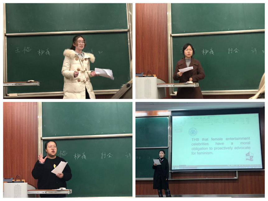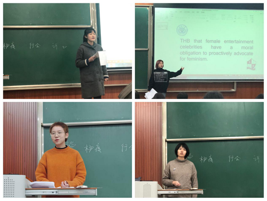比赛结束之际,评委们对选手们能够成功完成这次英语辩论赛表达了充分的赞赏和肯定。同时也指出选手们因初次参赛的缘故,经验尚显不足,在辩论时存在表述不流畅,思路不清晰等问题。评委们强调各位选手仍然有很大的上升空间,并且期待选手们努力提升英语辩论水平。盛荔老师点评指出了选手们均存在对辩题关键词定义的解释不够到位、用词不准确等问题,并向在场的各位选手及观众逐一深入阐述了辩题“THBthatfemale entertainment celebrities have a moral obligation to proactively advocate for feminism”中的关键词,进一步道出将这个辩题用于辩论赛赛题的原因。