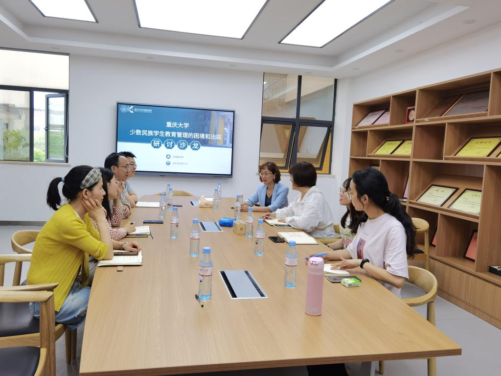 少数民族学生基本情况、工作开展情况及存在的问题进行了经验交流,大家就少数民族学生出现较多的学业困难和就业困难问题展开了热烈地讨论。