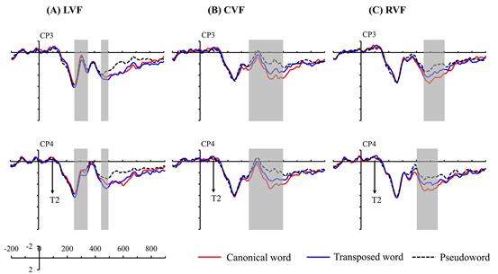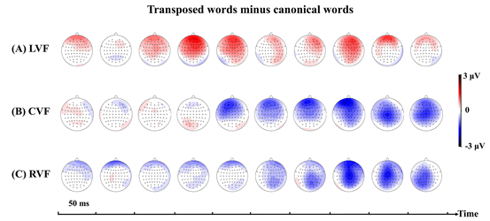 《心理学前沿》(Frontiersin Psychology)刊发了重庆大学语言认知及语言应用研究基地曹洪文副教授团队的研究论文“Electrophysiological correlates of character transposition in the left and right visual fields”,报道了该团队采用事件相关电位技术(event-related potential, ERP)研究左右视野中词素位置加工的认知神经机制所取得的重要进展。研究发现:当目标词语呈现在中心视野(centrally presented visual fields, CVF)和右视野(right visual fields, RVF)的时候,N400的波幅会减小;此外,相比于复合词而言,词素位置颠倒的词语诱发了更大的N400波幅和更小的LPC波幅,该结果显示词素位置颠倒会影响整词语义信息加工。论文通讯作者是曹洪文副教授,第一作者是曹洪文老师指导的博士研究生张二虎。