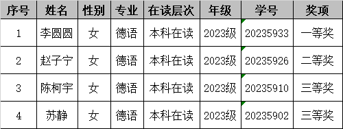 关于公布第四届“德语之星”全国高校德语演讲比赛校选赛比赛结果的通知